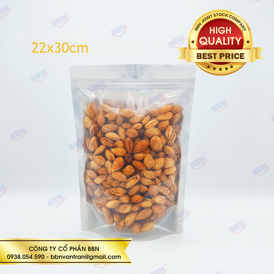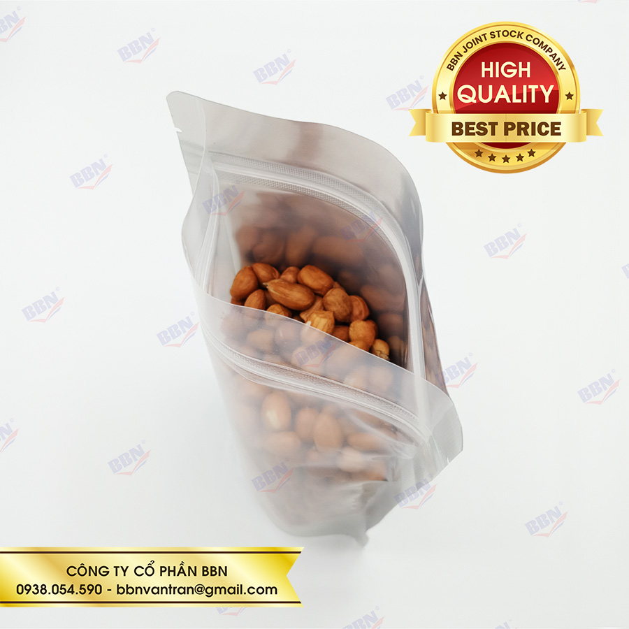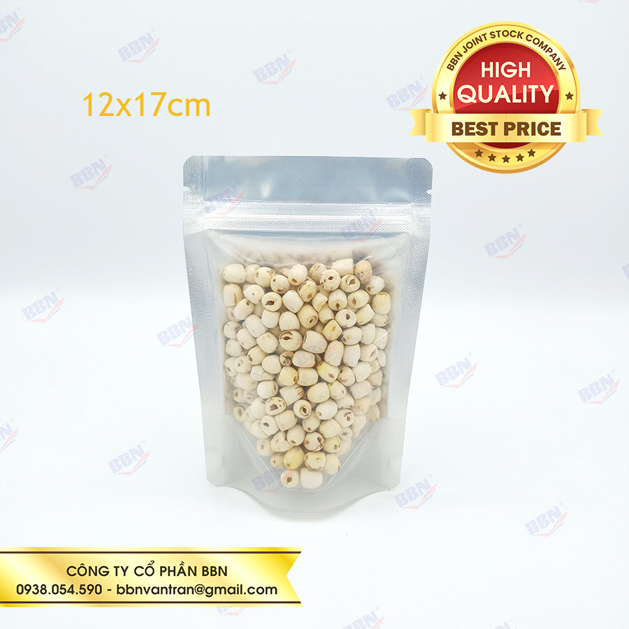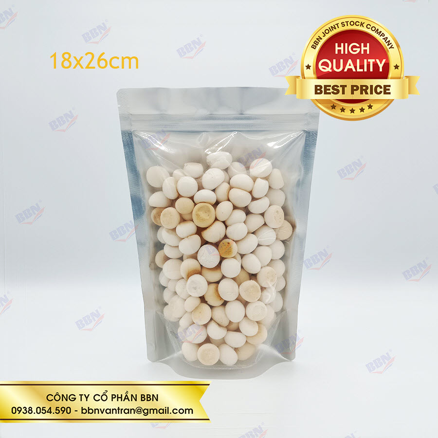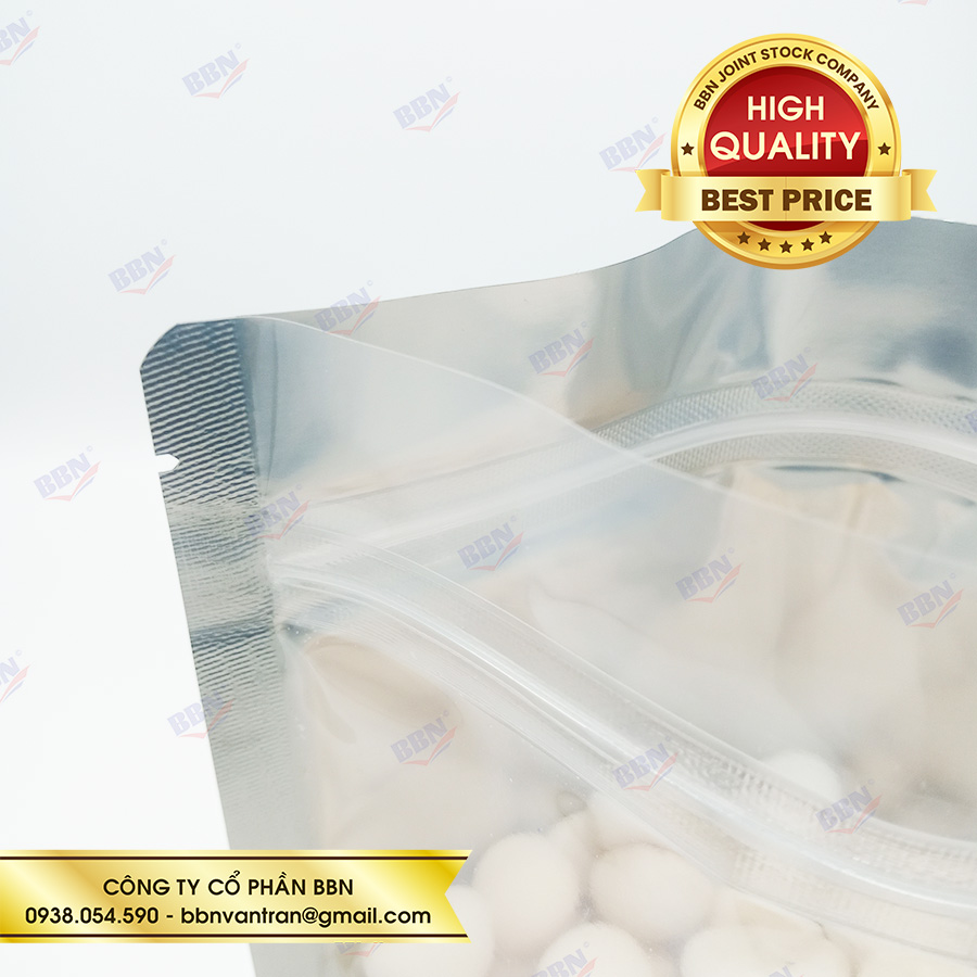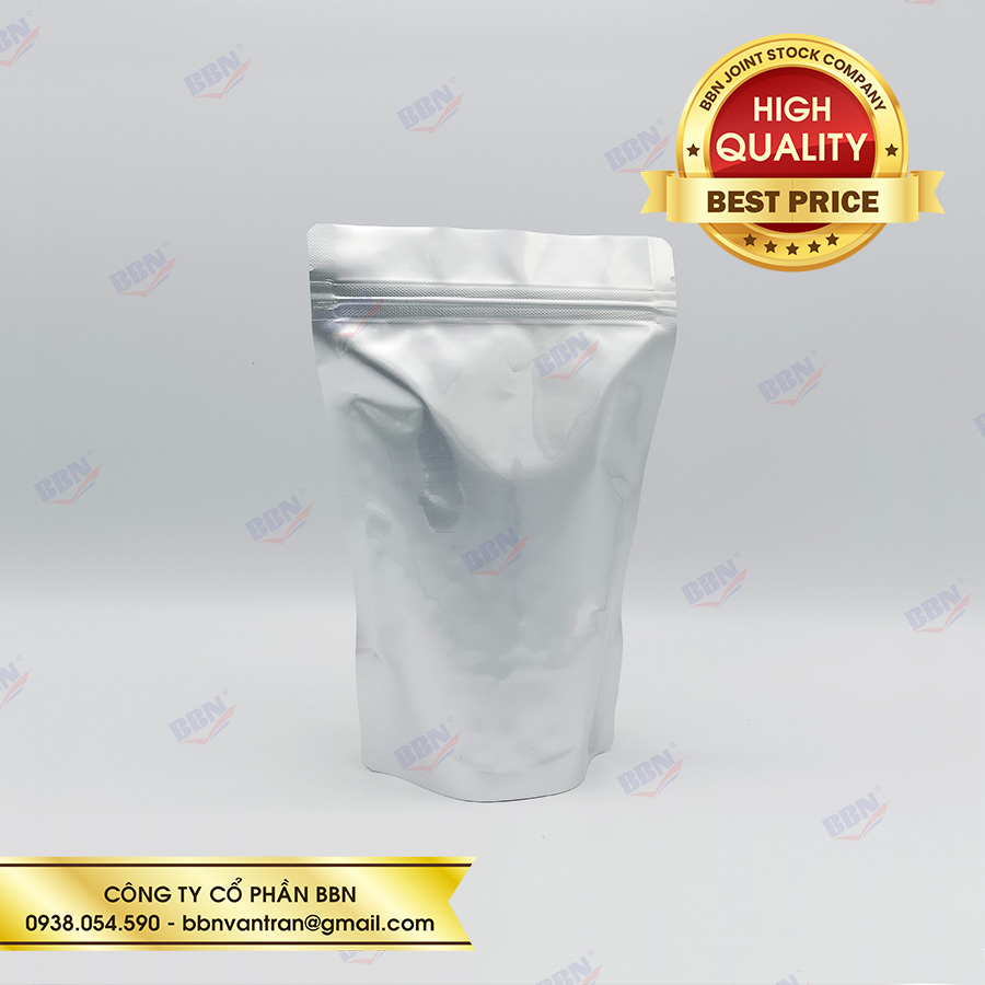 Túi zipper nhôm đáy đứng mặt trong mặt bạc (1kg)