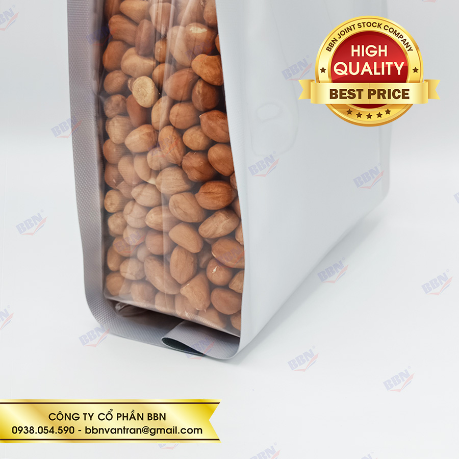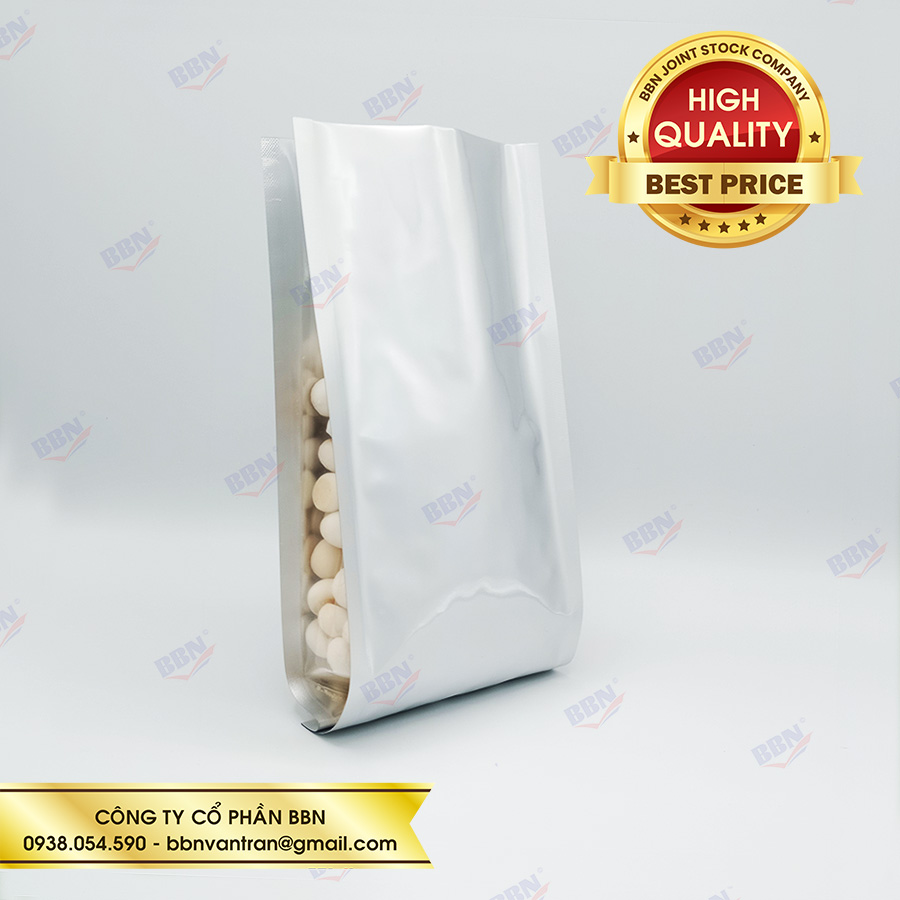 Túi 4 biên xếp hông: Bảo quản và trưng bày sản phẩm của bạn hiệu quả với hông trong suốt thể hiện rõ sản phẩm bên trong, mặt trước và sau bạc sang trọng, sạch sẽ.