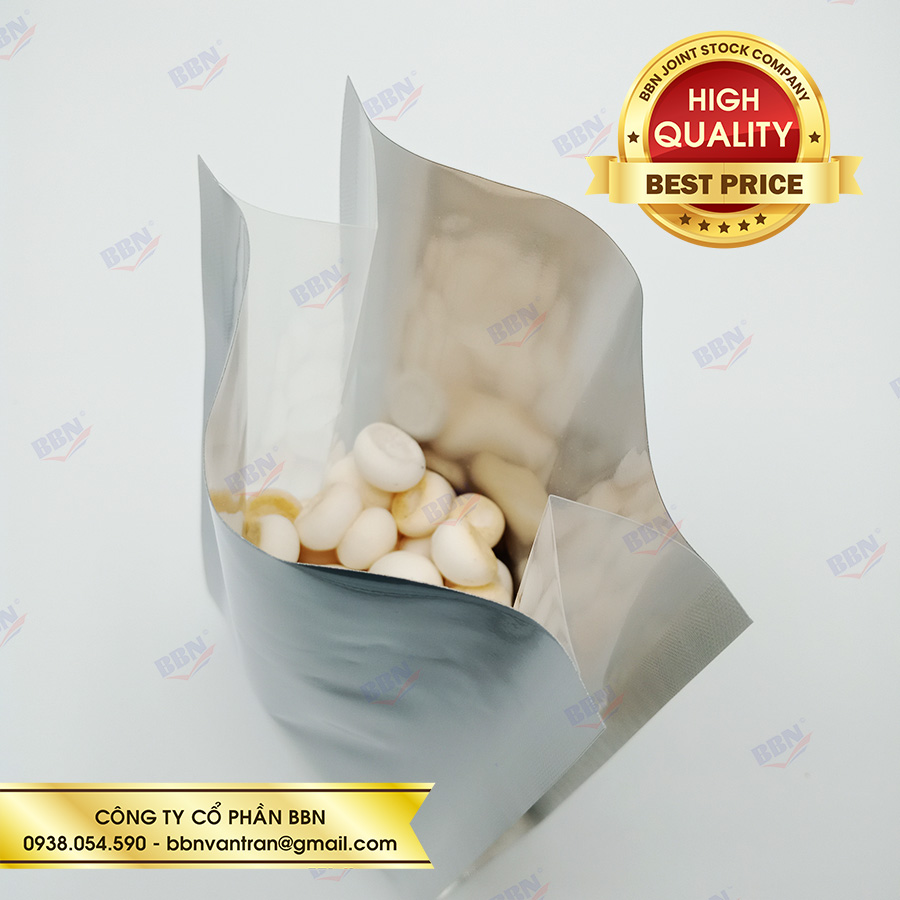 Chất liệu: mặt trong PET/PE, mặt bạc PET/Al/PE